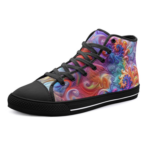 High-Top Canvas Shoes Colorful Vibrant Swirling Abstraction