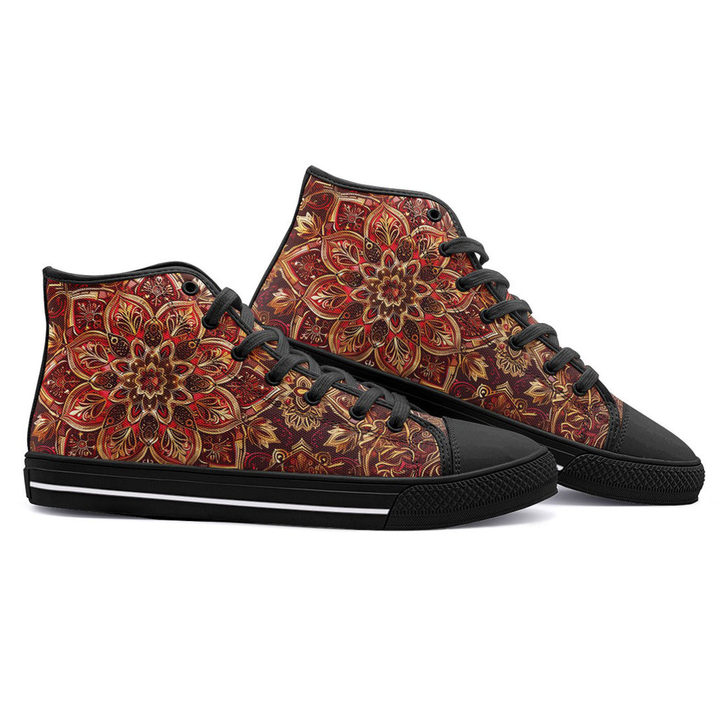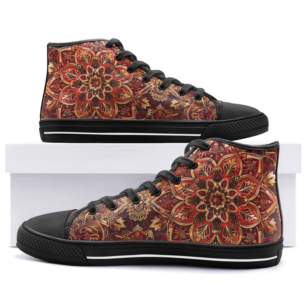 High-Top Canvas Shoes Golden and Red Arabesque Pattern