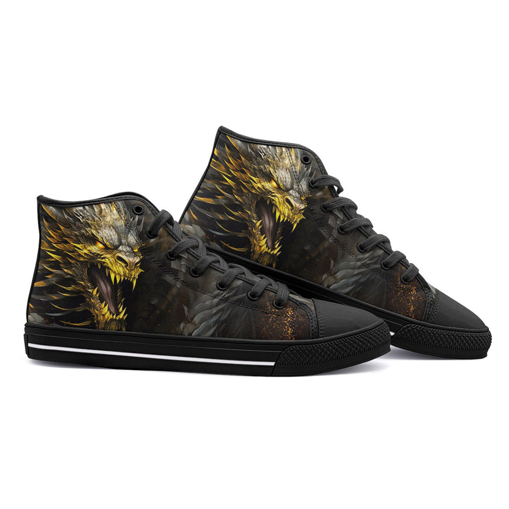 High-Top Canvas Shoes Golden Dragon with Fire