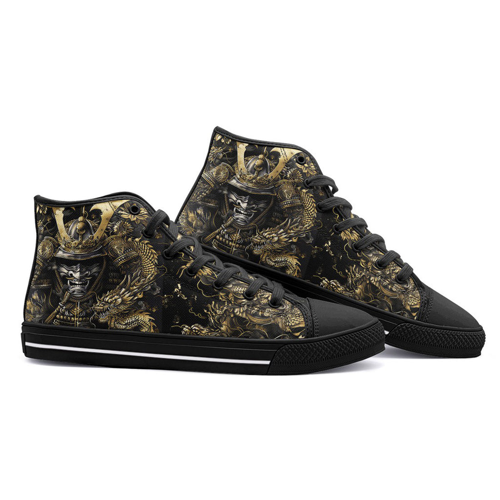 High-Top Canvas Shoes Golden Samurai and Dragon Art