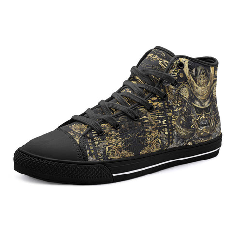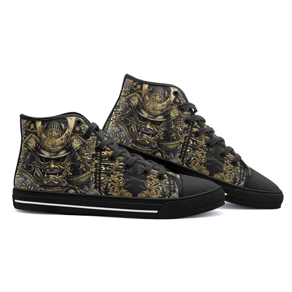 High-Top Canvas Shoes Golden Samurai Mask Japanese Motifs