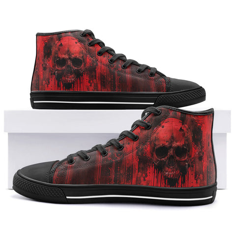 High-Top Canvas Shoes Gothic Red Skull Artwork