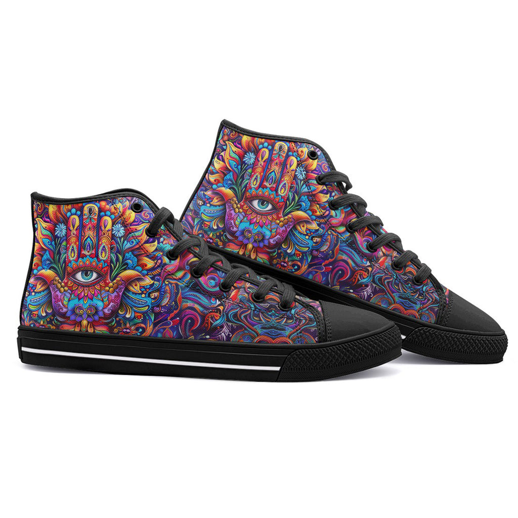 High-Top Canvas Shoes Hamsa Hand Psychedelic Colors