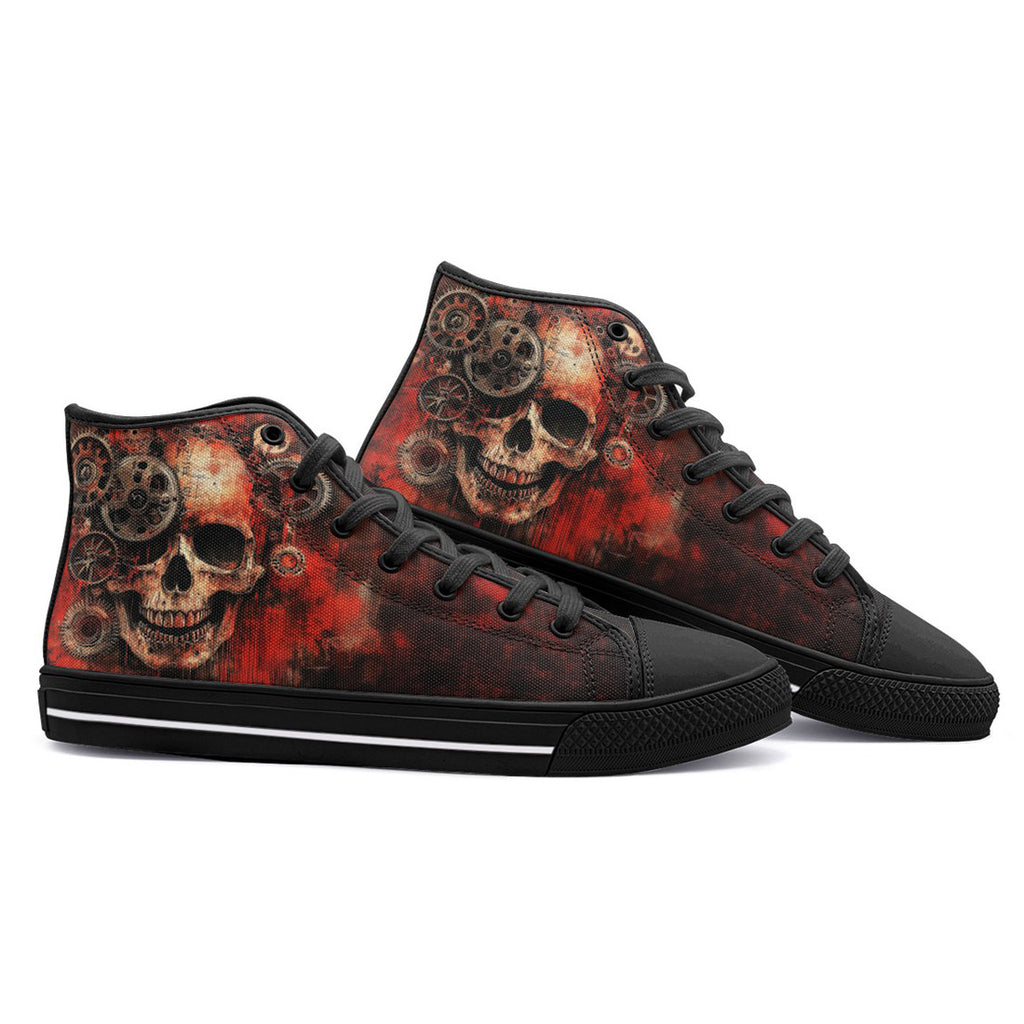 High-Top Canvas Shoes Industrial Horror Skull with Gears