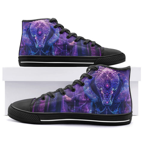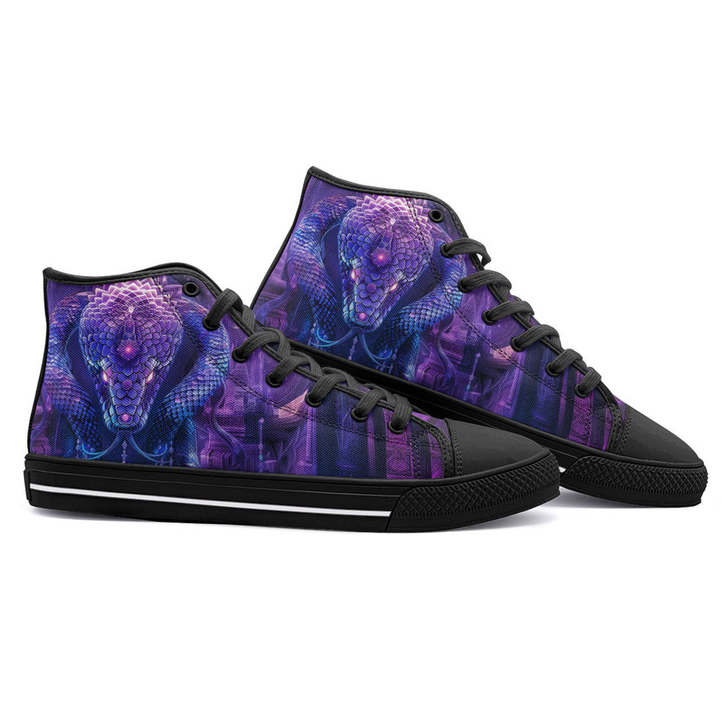 High-Top Canvas Shoes Mythical Neon Blue Cobra Artwork