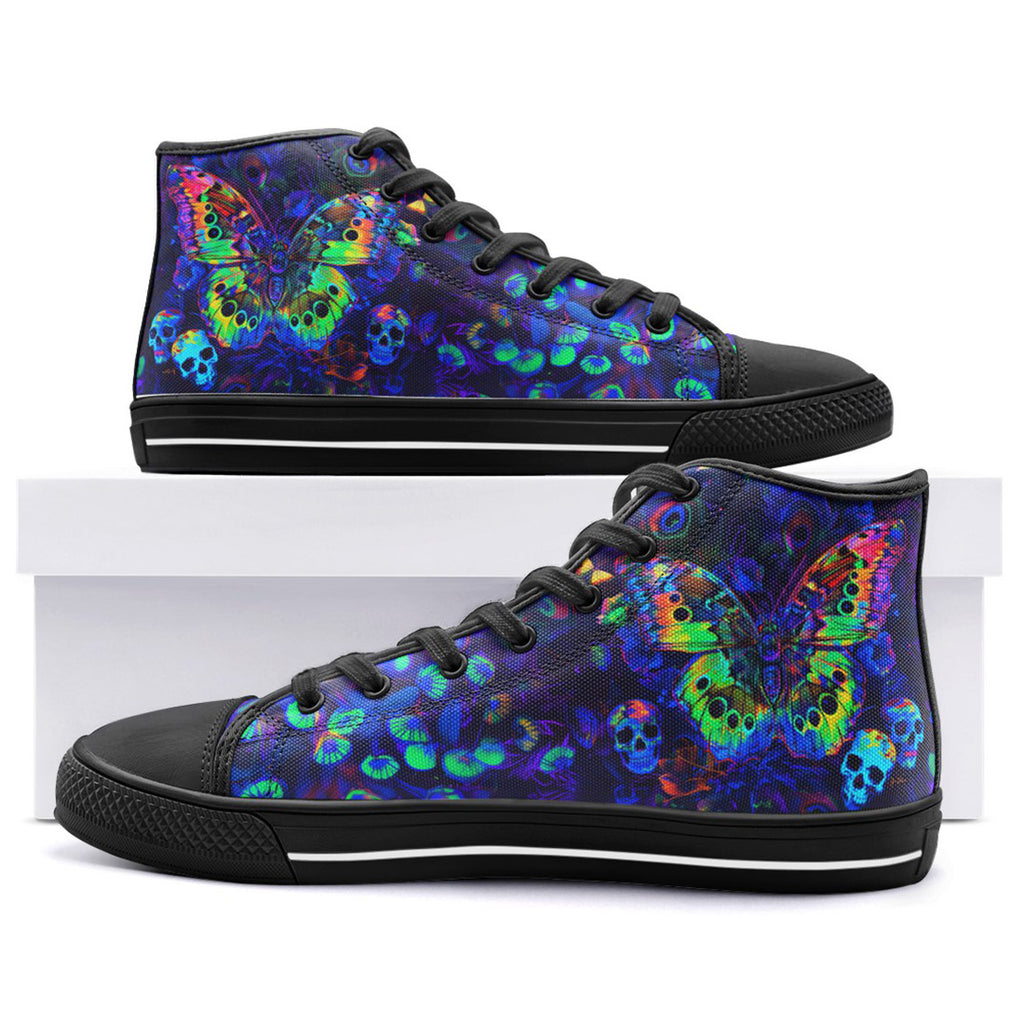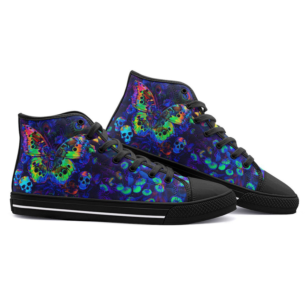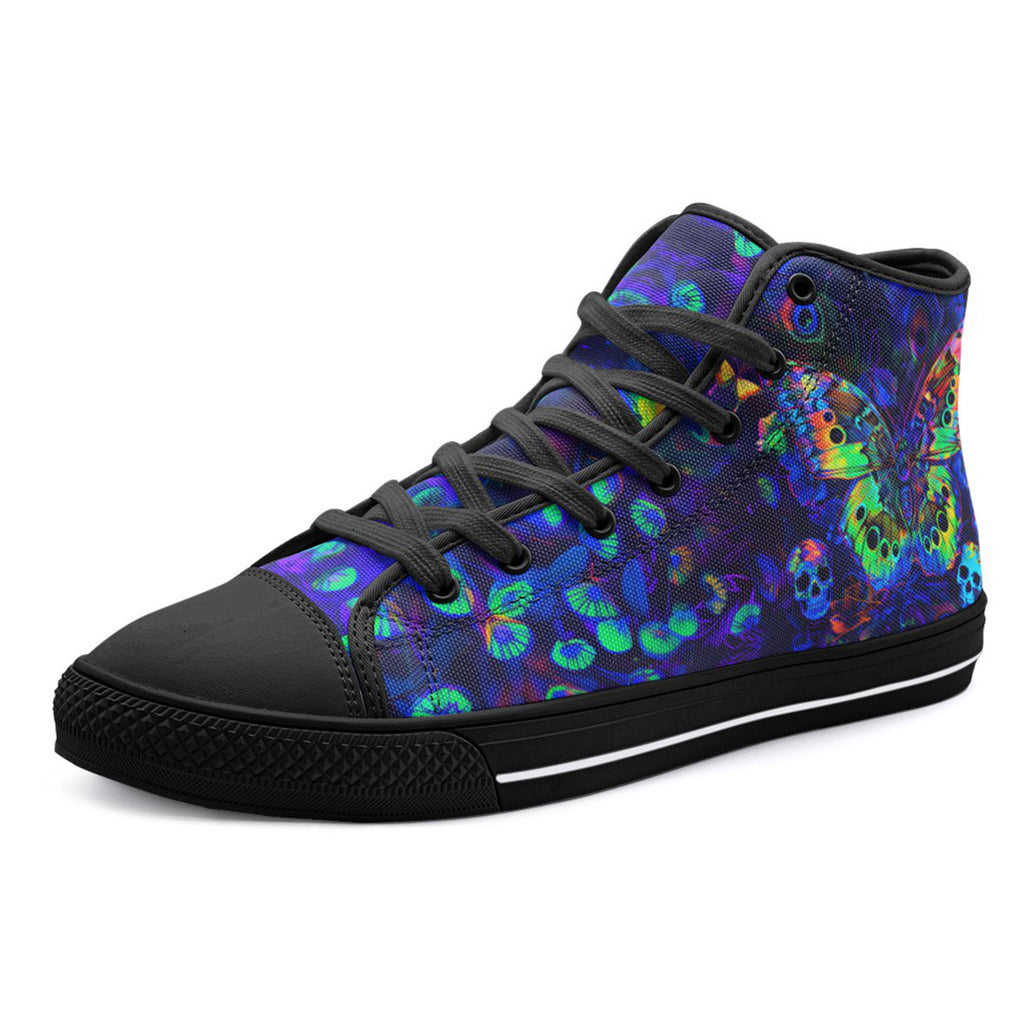 High-Top Canvas Shoes Neon Butterfly and Skulls