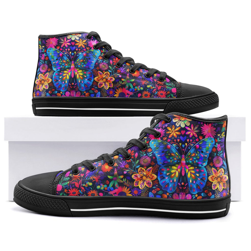 High-Top Canvas Shoes Neon Butterfly Colorful Flowers