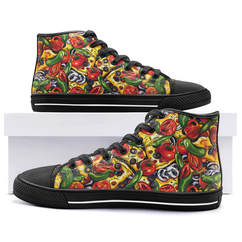 High-Top Canvas Shoes Pizza Ingredients Pattern