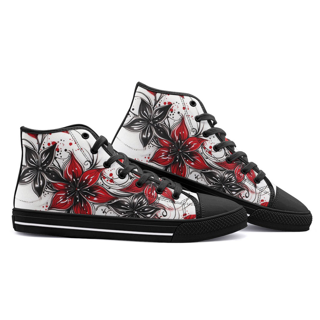 High-Top Canvas Shoes Red and Black Lily Flowers