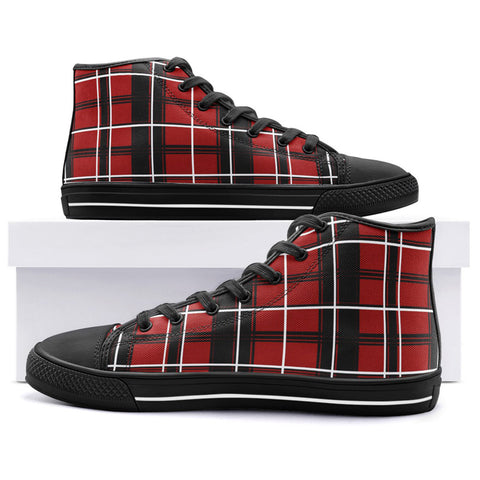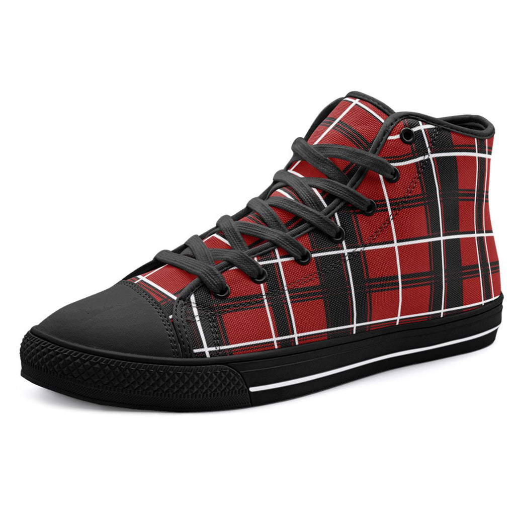 High-Top Canvas Shoes Red and Black Plaid Pattern