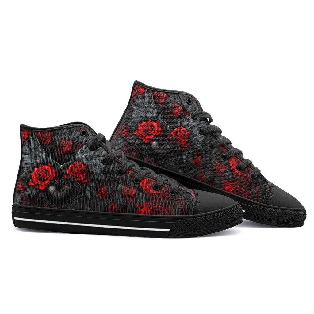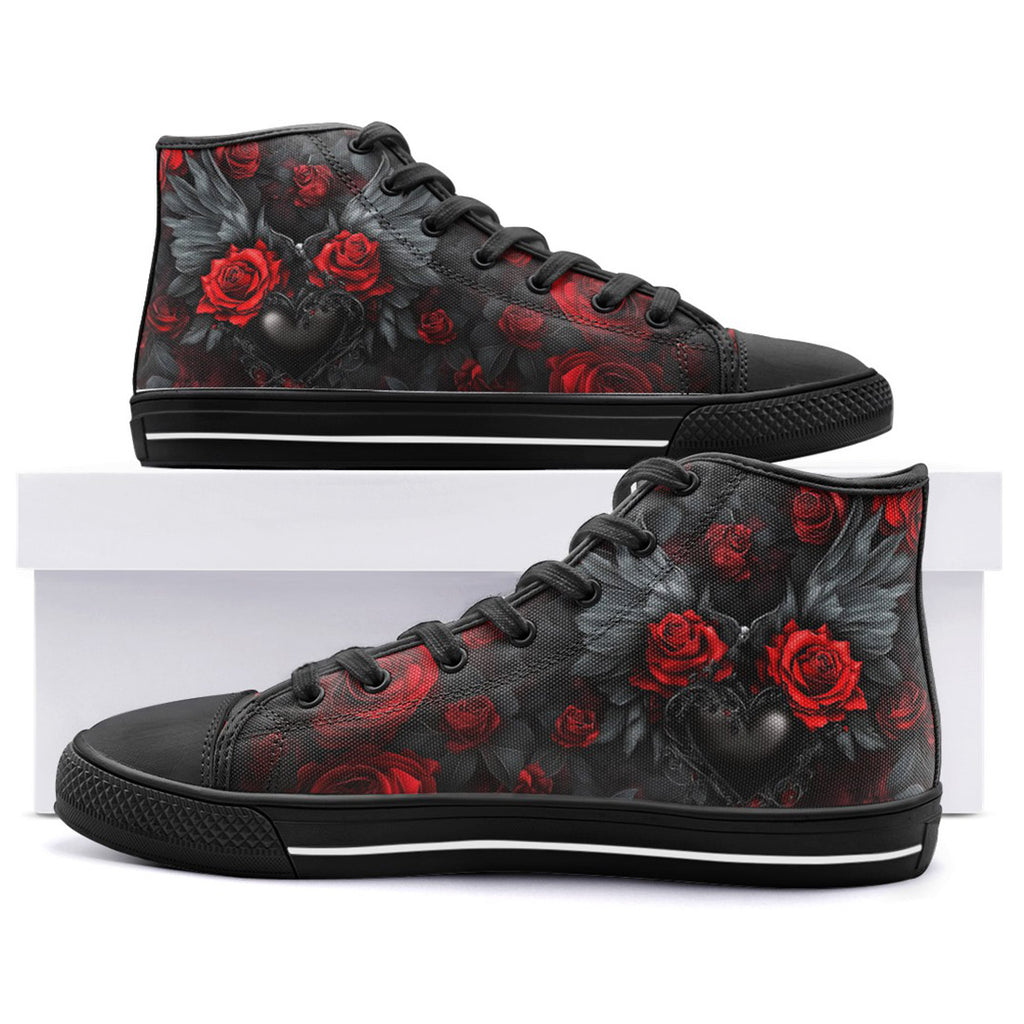 High-Top Canvas Shoes Red Roses Black Heart with Wings
