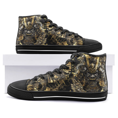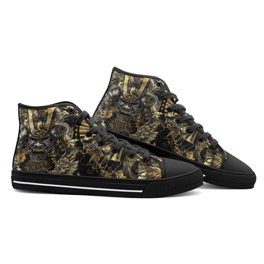 High-Top Canvas Shoes Samurai and Dragons Japanese Artwork