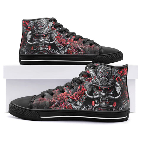 High-Top Canvas Shoes Samurai Armor in Black and Red