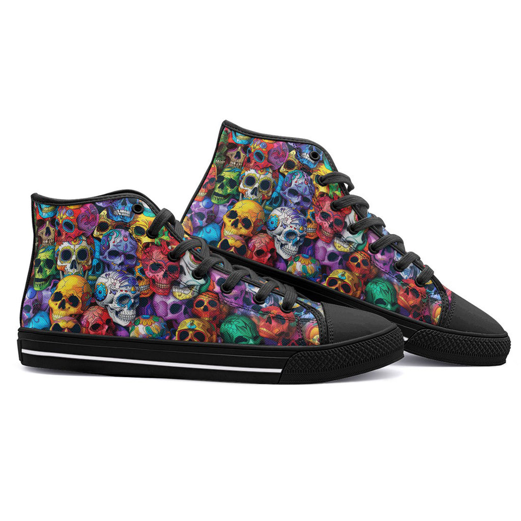 High-Top Canvas Shoes Vibrant and Colorful Skulls
