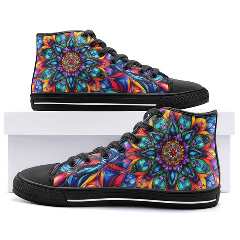 High-Top Canvas Shoes Vibrant Colorful Geometric Shapes