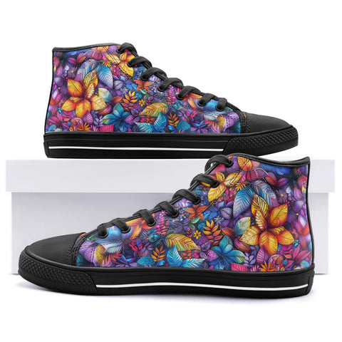 High-Top Canvas Shoes Vibrant Colorful Leaves