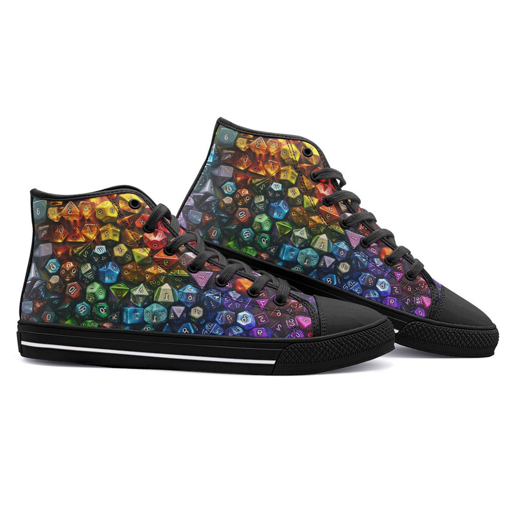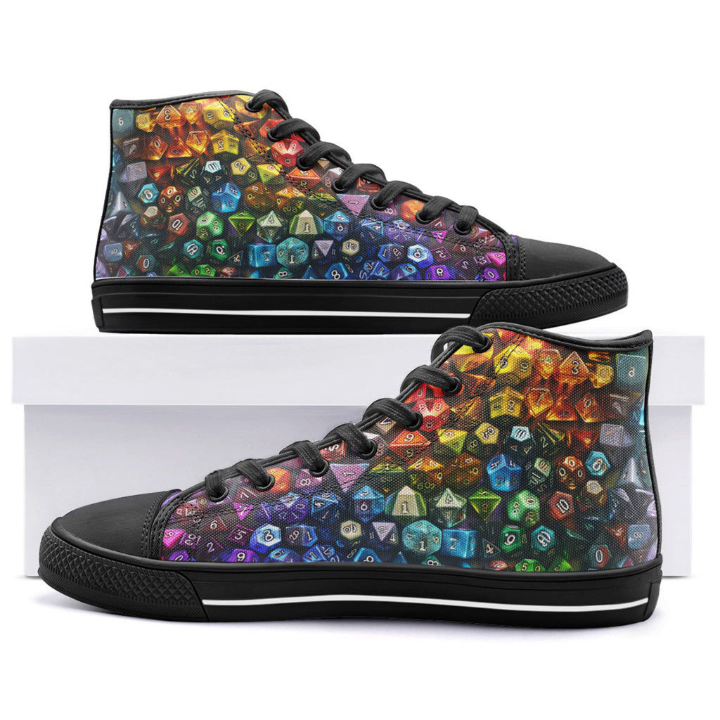 High-Top Canvas Shoes Vibrant Rainbow Dice
