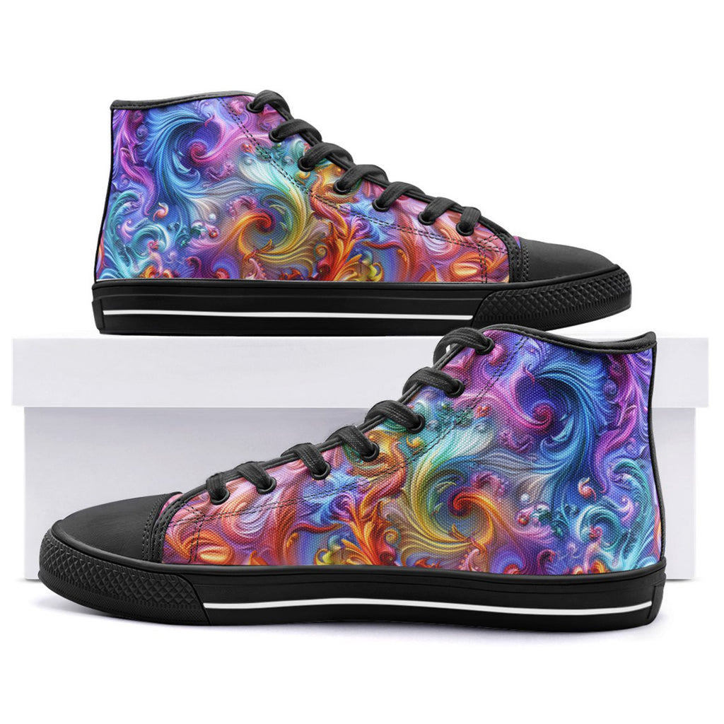High-Top Canvas Shoes Vibrant Swirling Colors