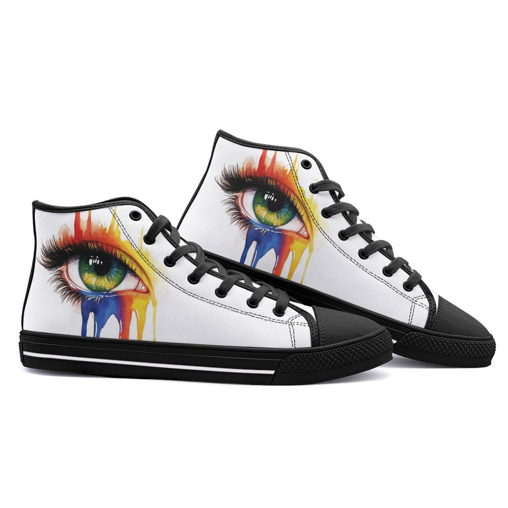 High-Top Canvas Shoes Watercolor Eye with Paint Dripping