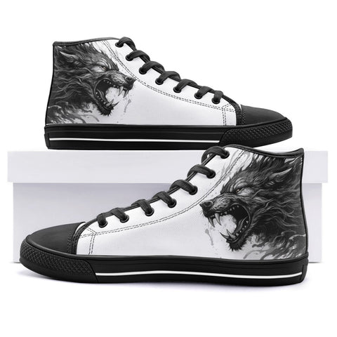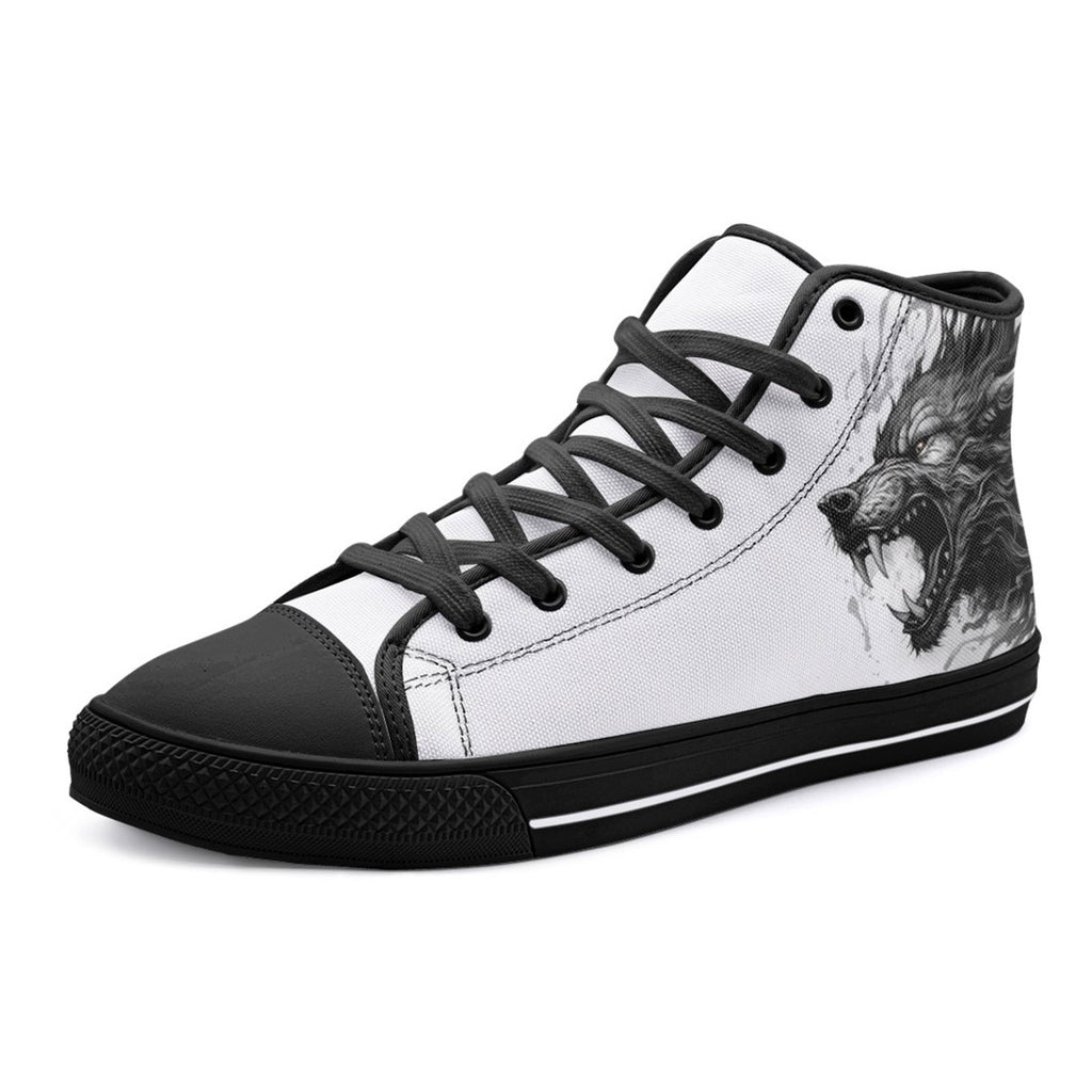 High-Top Canvas Shoes Wolf Drawing Black and White