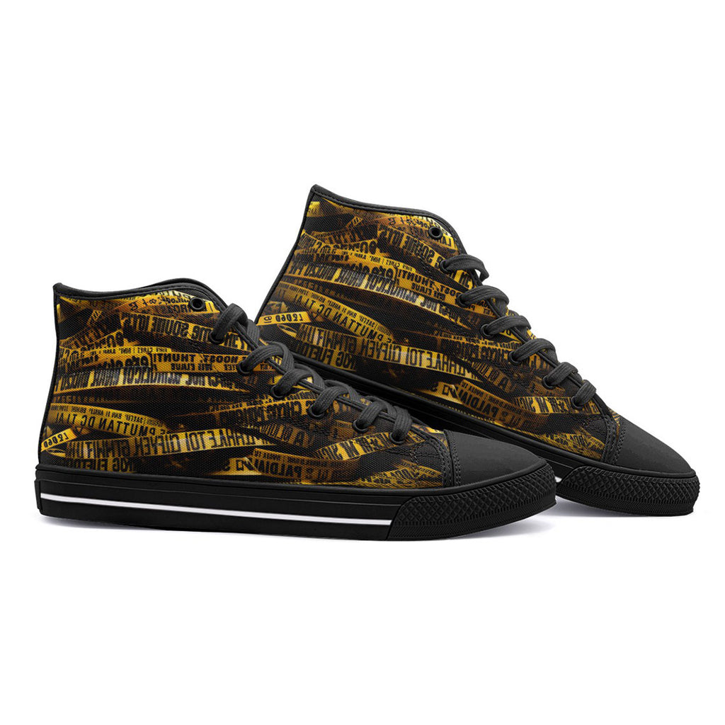 High-Top Canvas Shoes Yellow Caution Police Tape