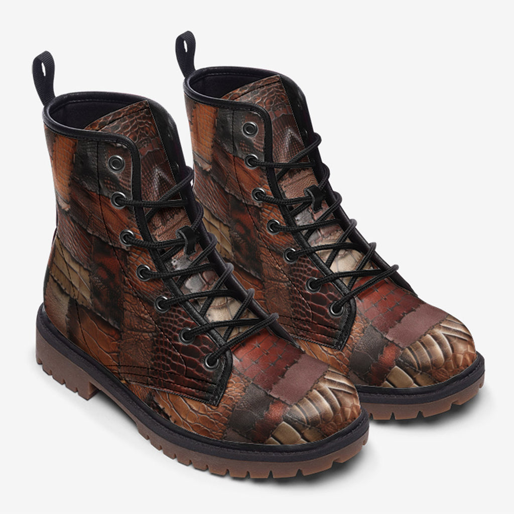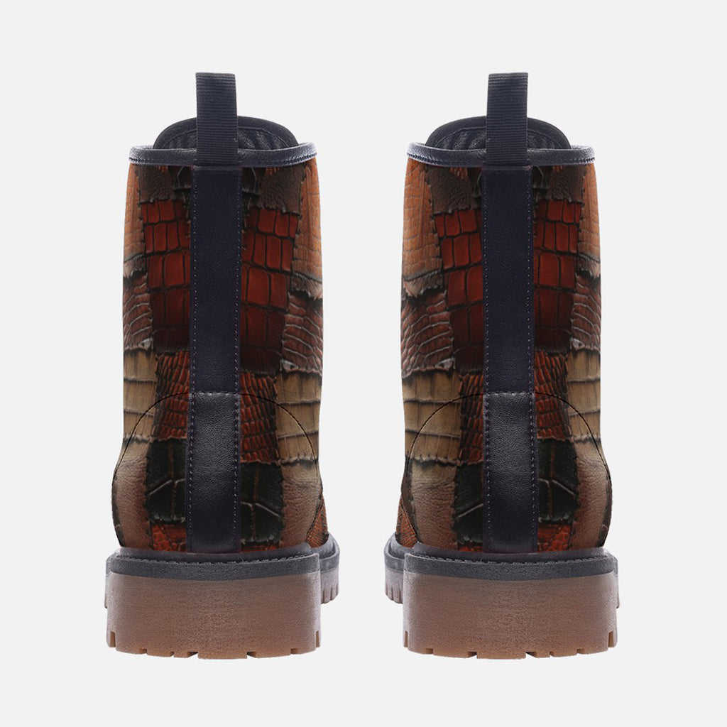 Leather Boots Alligator Skin Patchwork Print