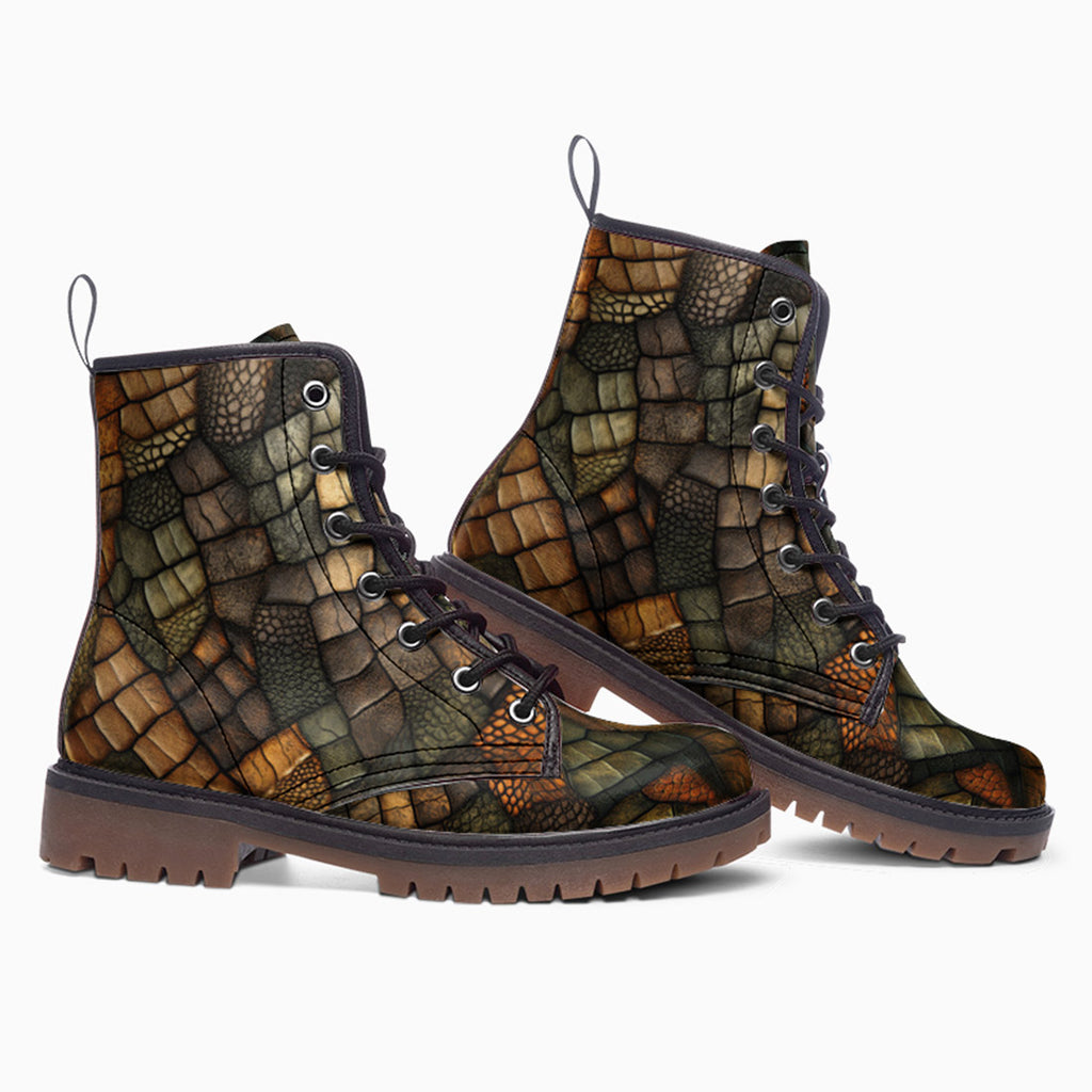Leather Boots Alligator Texture Print