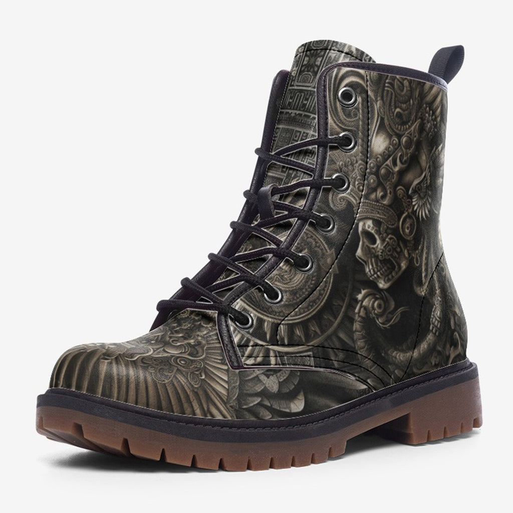 Leather Boots Ancient Skull Carved Stone Wall Art