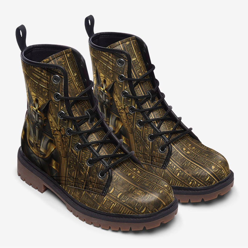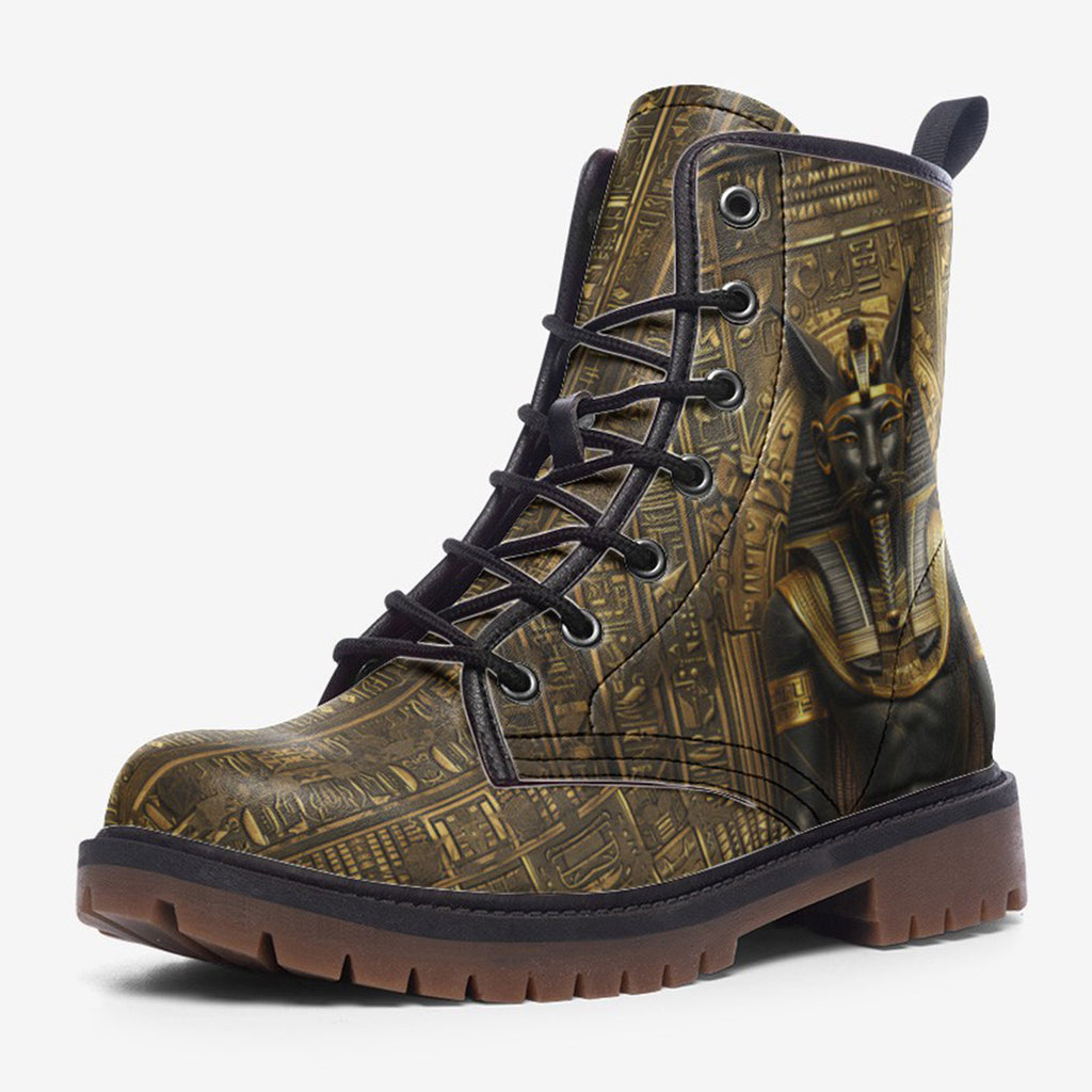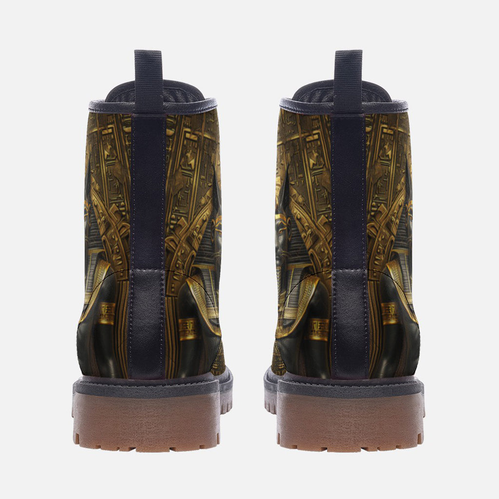 Leather Boots Anubis Cat Egypt Gold and Black Stone