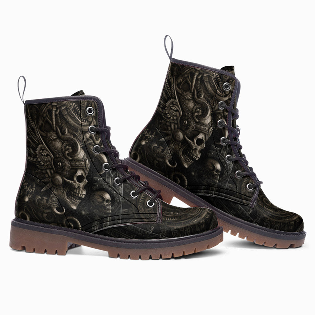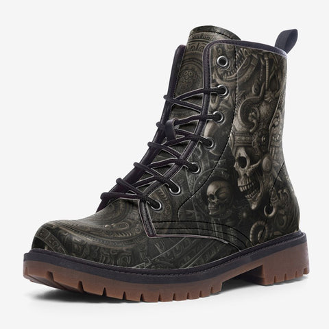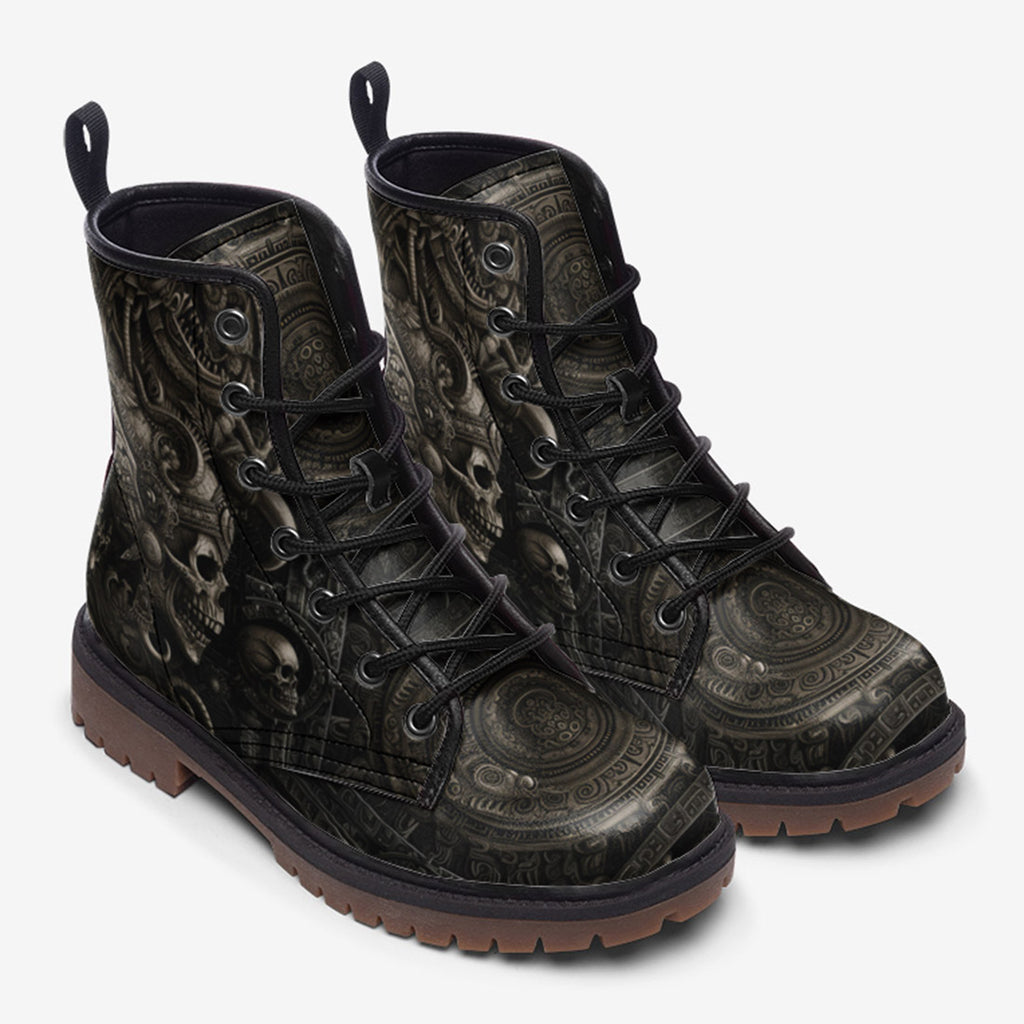 Leather Boots Aztec Skull Carved Stone Wall Art