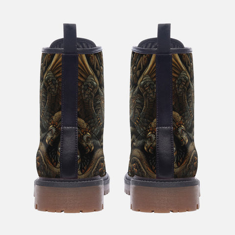Leather Boots Futurist Mechanical Engraved Metal Art