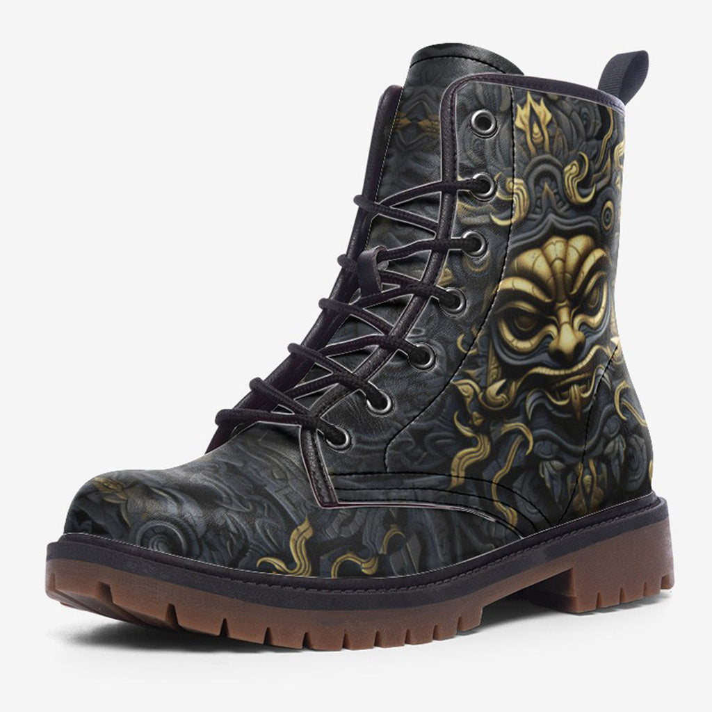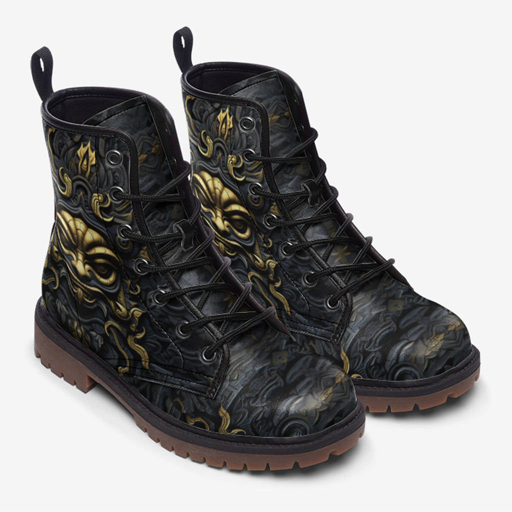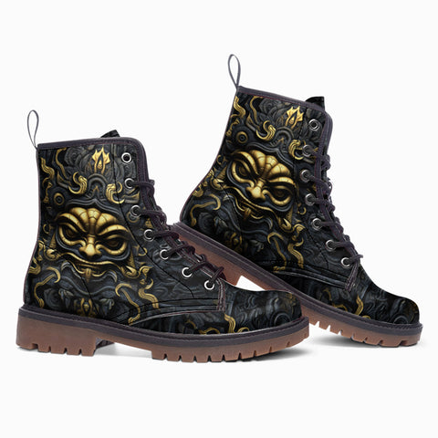 Leather Boots Gold and Black Ornate Mask