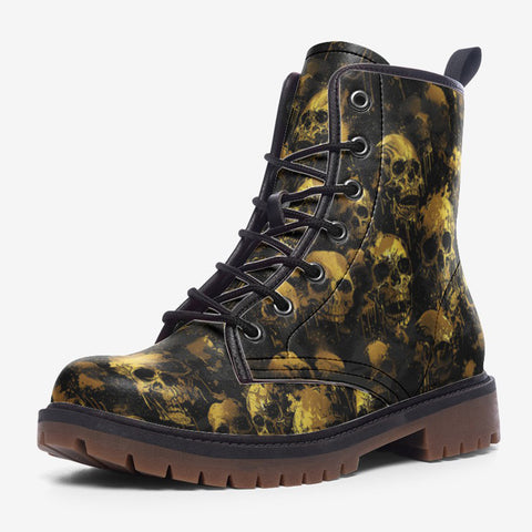 Leather Boots Golden Skulls Collage