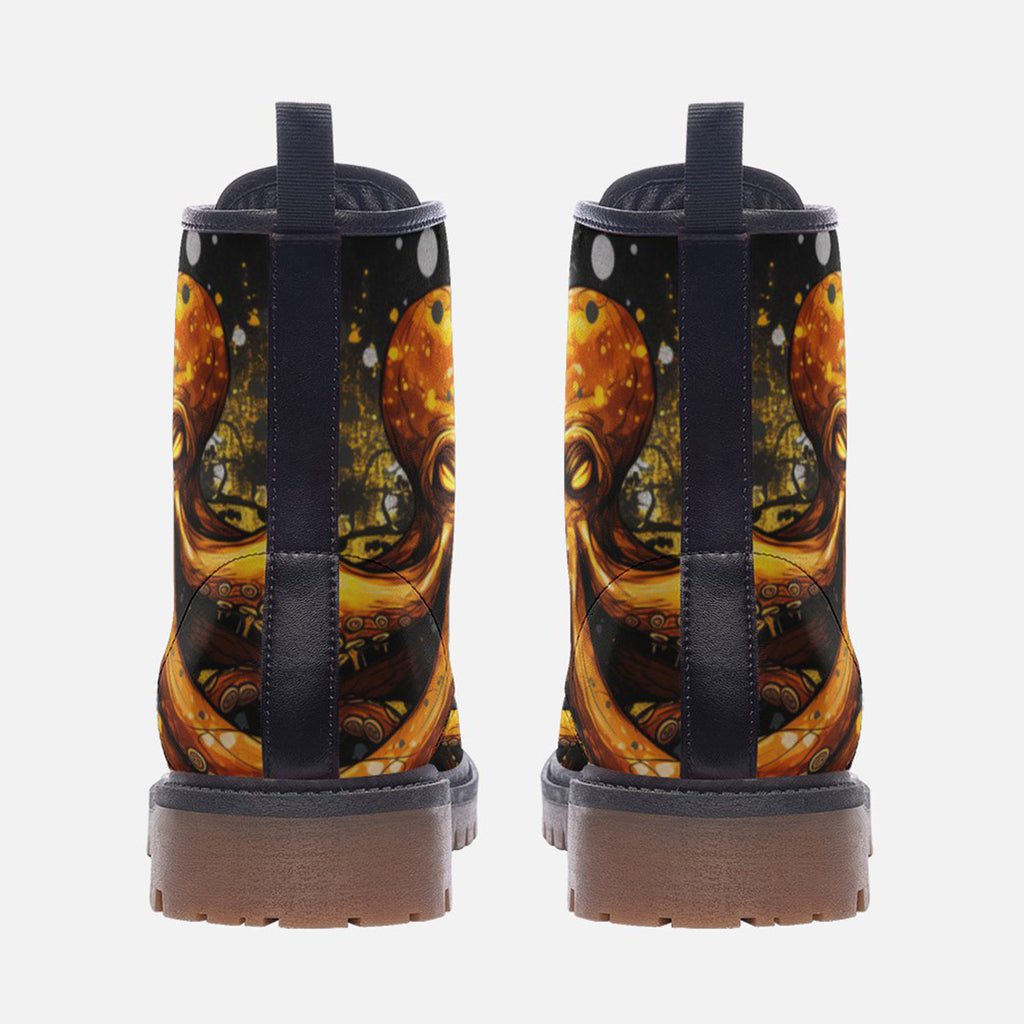Leather Boots Orange Octopus with Splatters