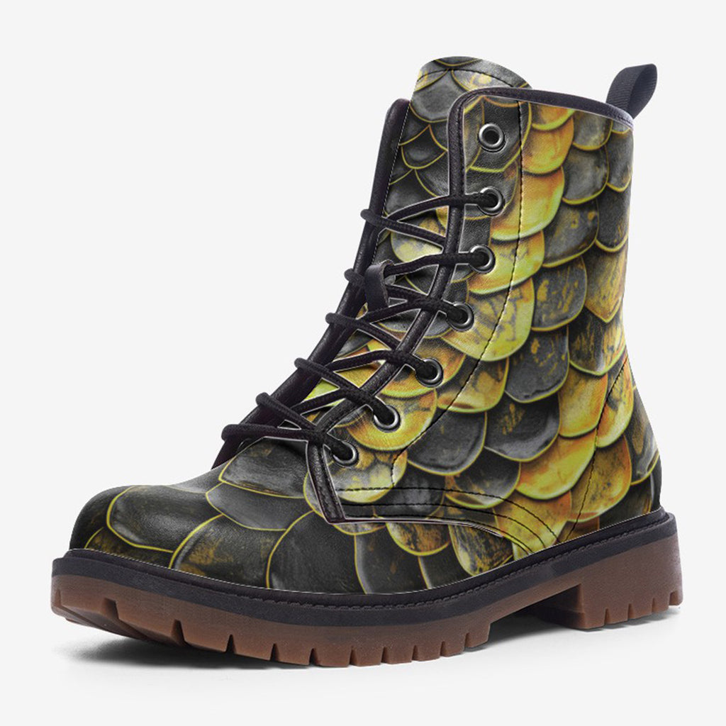 Leather Boots Yellow Skales Texture Print