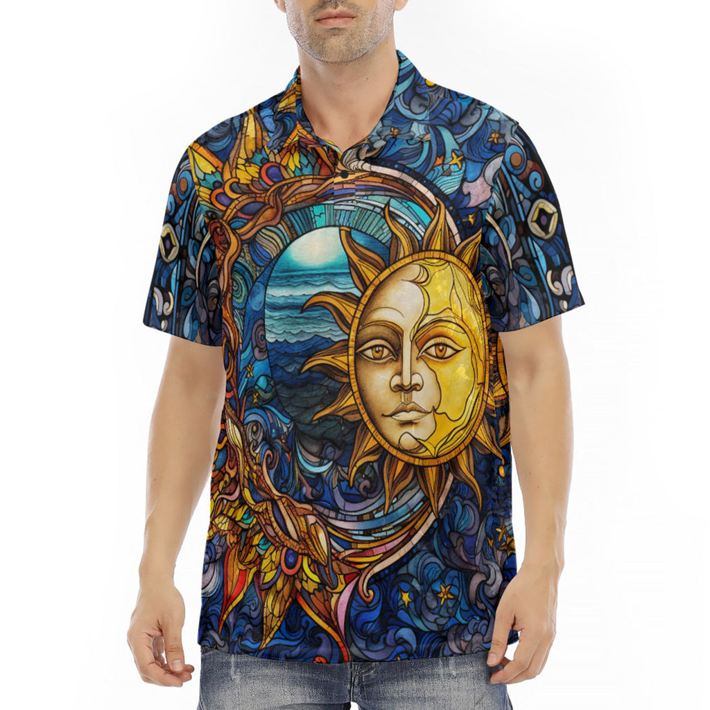 Men's Polo Shirt Ancient Fantasy Sun and Moon