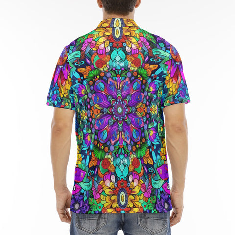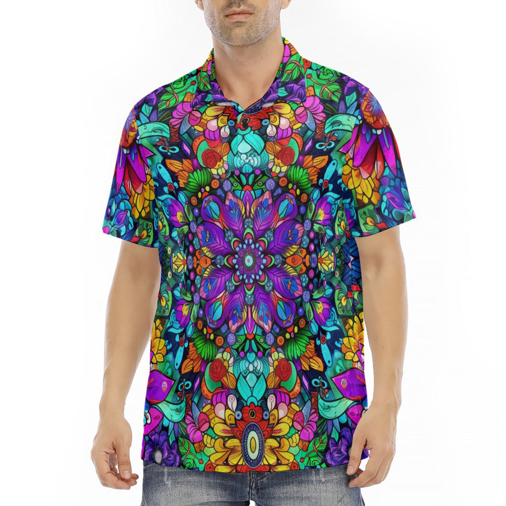 Men's Polo Shirt Bright Colors Flower and Crystals