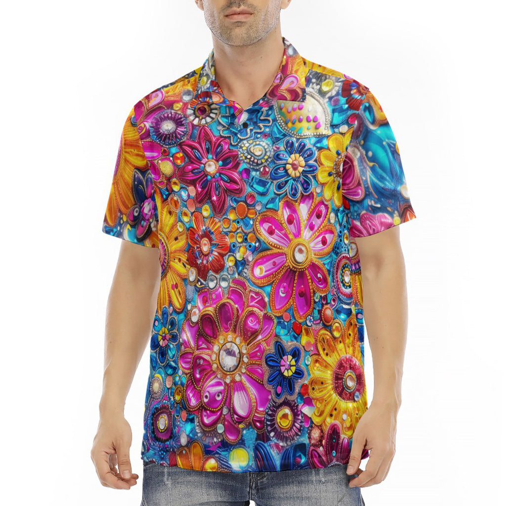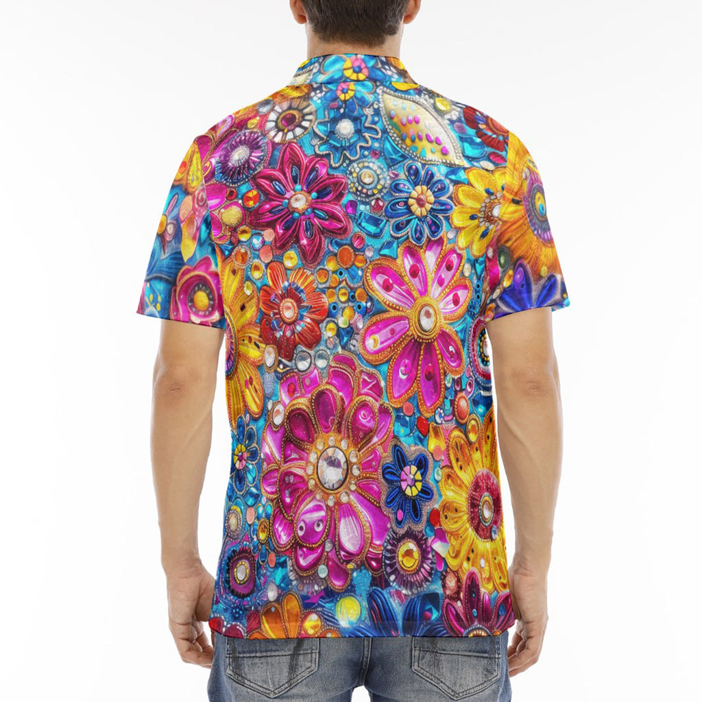 Men's Polo Shirt Bright Sparkling Gemstones Flowers