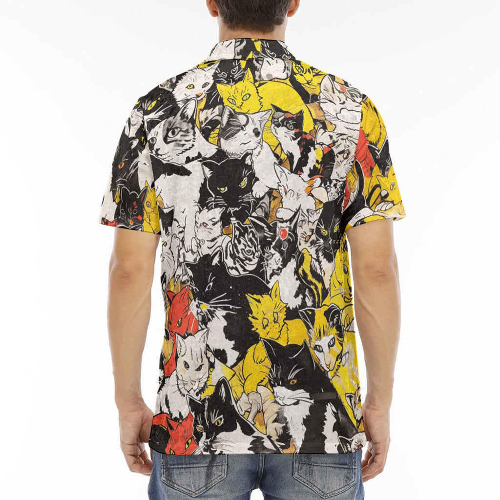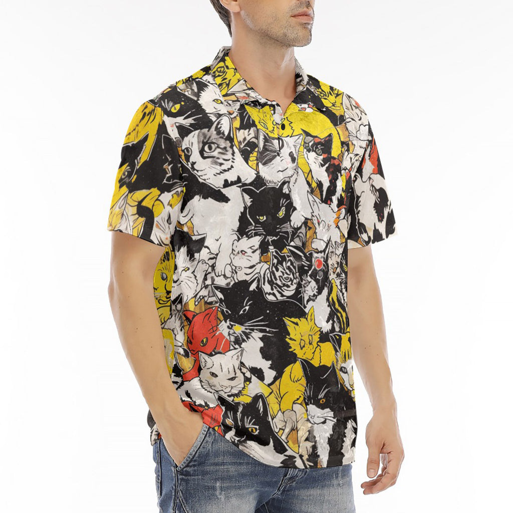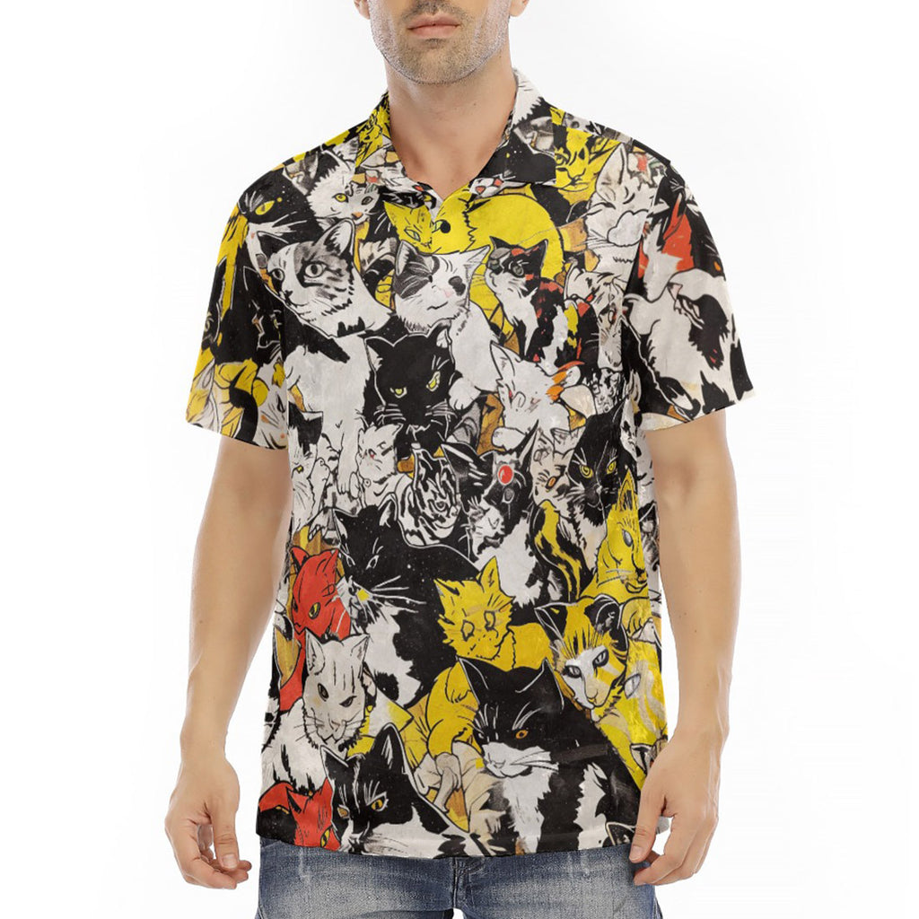 Men's Polo Shirt Cartoon Style Cats Pattern