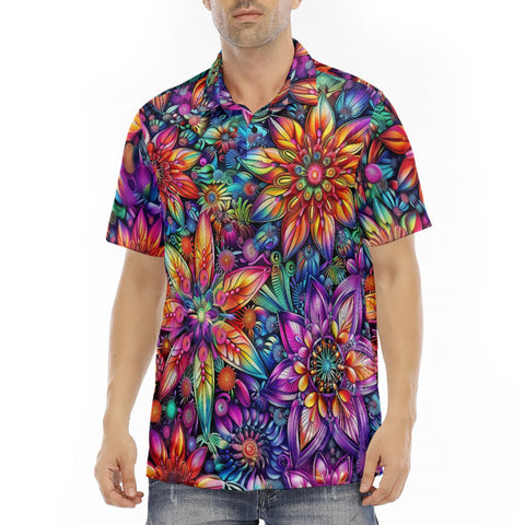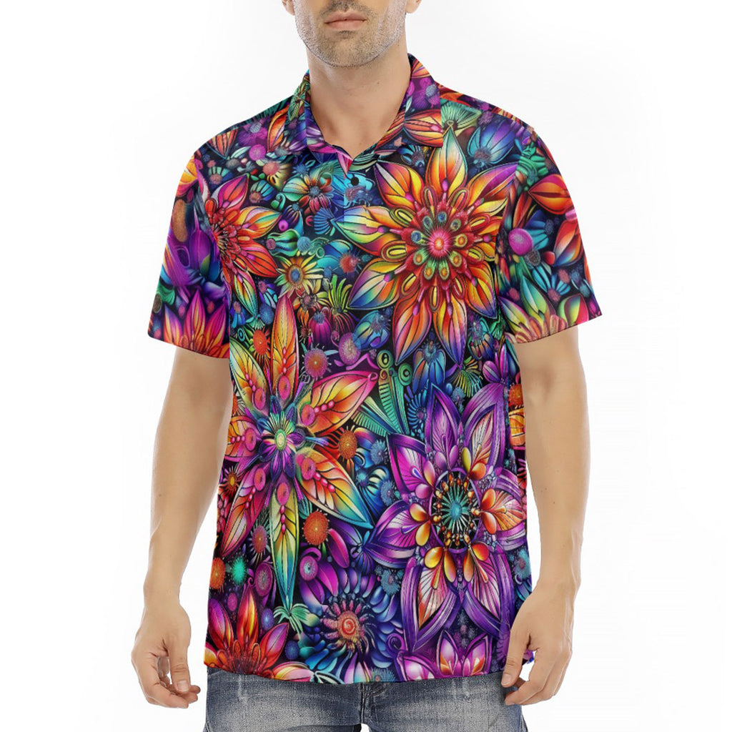 Men's Polo Shirt Colorful Flower designs and Crystals