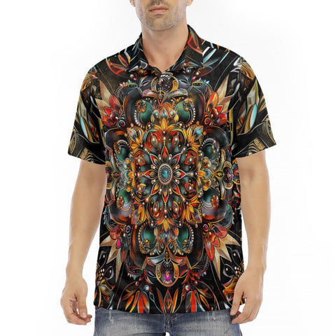 All over printed polo shirt is made of high-quality polyester. Garments made from this fabric are easy-care, designed to look good for a long time and are sheer pleasure to wear.