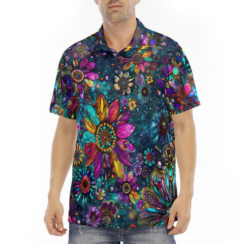 Men's Polo Shirt Colorful Psychedelic Flower and Gemstones