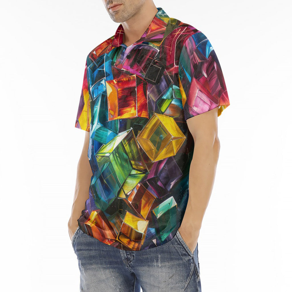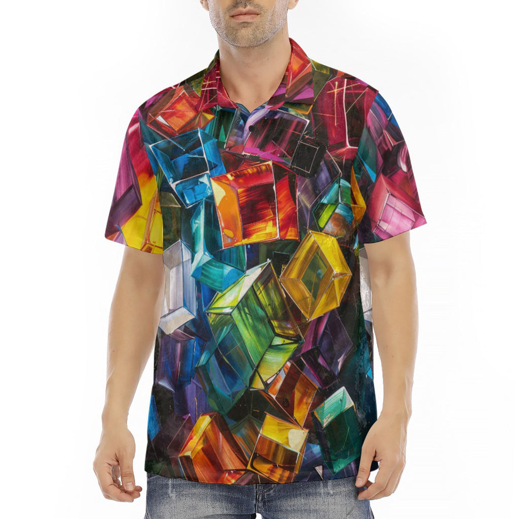 Men's Polo Shirt Colorful Shiny Glass Cubes