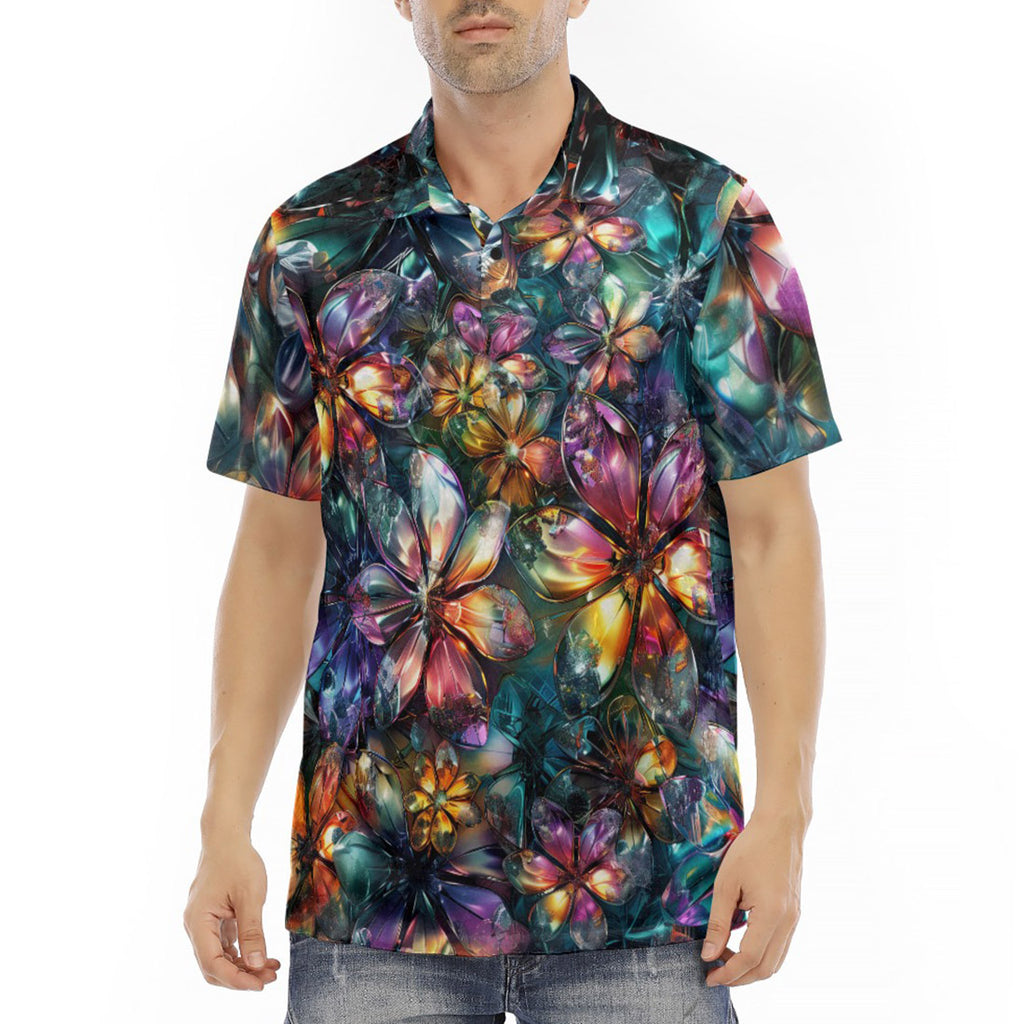 Men's Polo Shirt Crystal and Gemstone Flowers