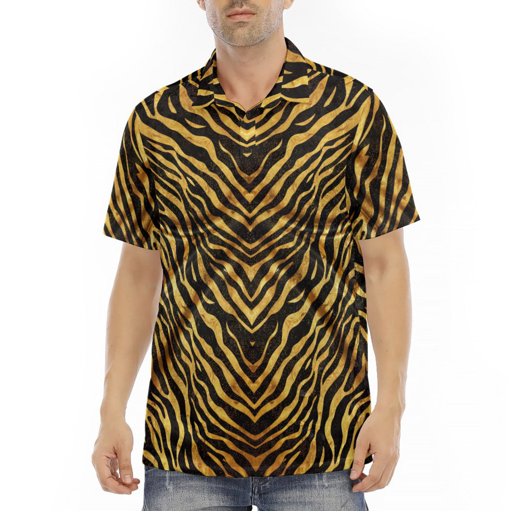 Men's Polo Shirt Gold and Black Tiger Print Fabric