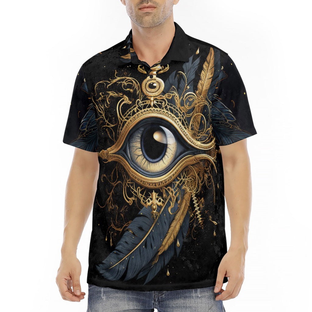 Men's Polo Shirt Golden Eye with Feather Symbolism