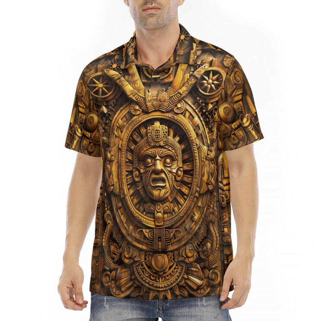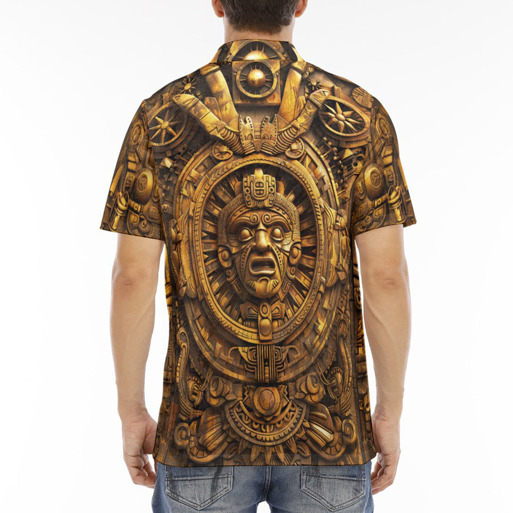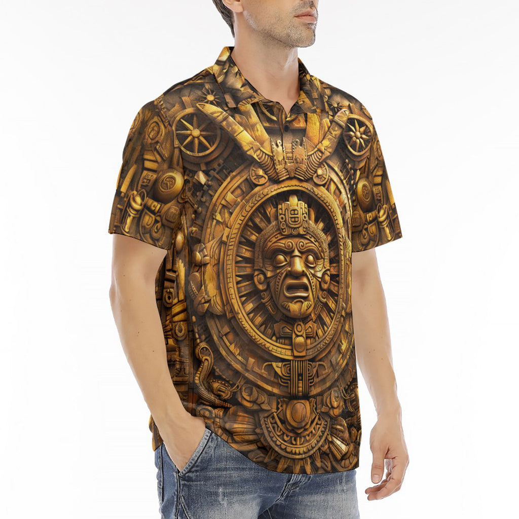Men's Polo Shirt Golden Sun God Mask Carvings