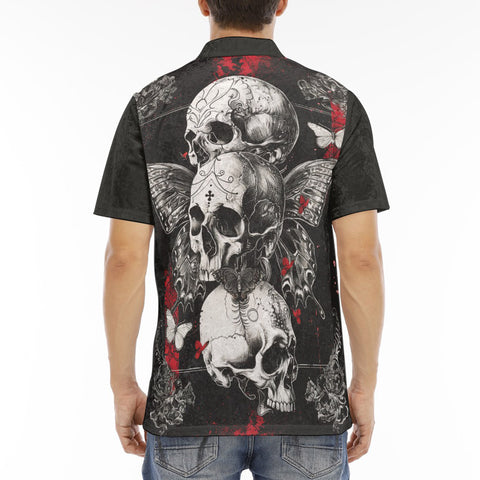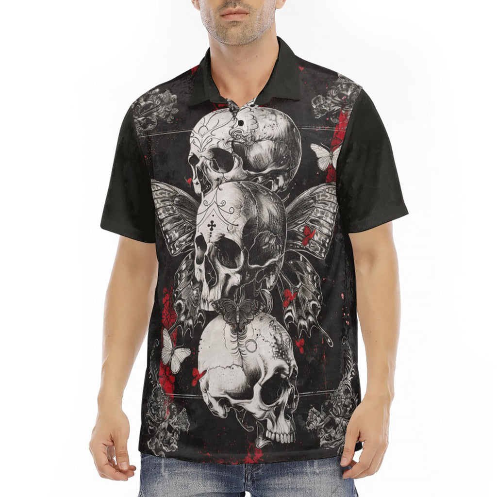 Men's Polo Shirt Gothic Skulls and Butterfly Art