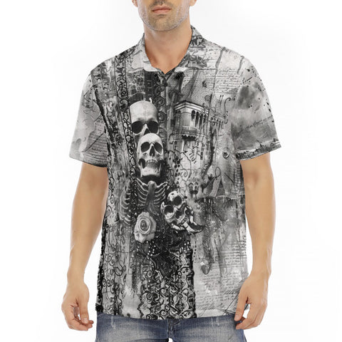 Men's Polo Shirt Gothic Skulls Skeletons Hearts