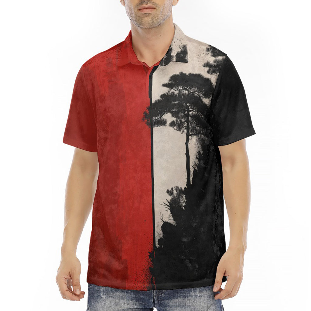Men's Polo Shirt Minimalism Japanese Landscape Art